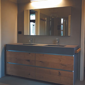 Lo “Smart” lo progetta il cliente. Con cassetti oppure ante, vani a giorno, vasca integrata alta o bassa o dove si preferisce, fatte in legno, resina, laminato o altro.